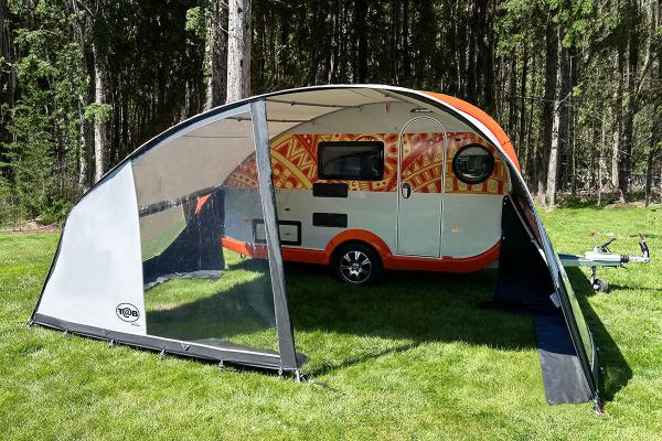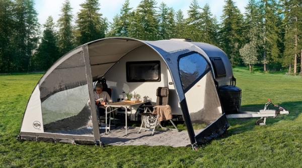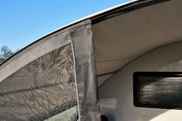 Erweitern Sie Ihr T@b Sonnendach Plus mit dieser Front. Diese Front kann per Reißverschluss an der linken Fronthälfte es Sonnendachs montiert werden. Somit ergibt sich dort ein schöne, Windgeschütze Ecke. Die Front deckt etwa die Hälfte des Sonnendachs ab.