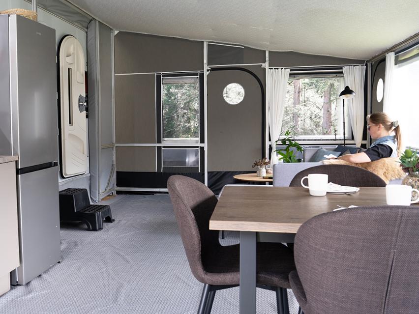 Det faste gulv sikrer desuden, at VILLA står stabilt, selv i kraftig blæst og regn, hvilket gør det til et ideelt valg for fastliggere, der camperer hele sæsonen.
