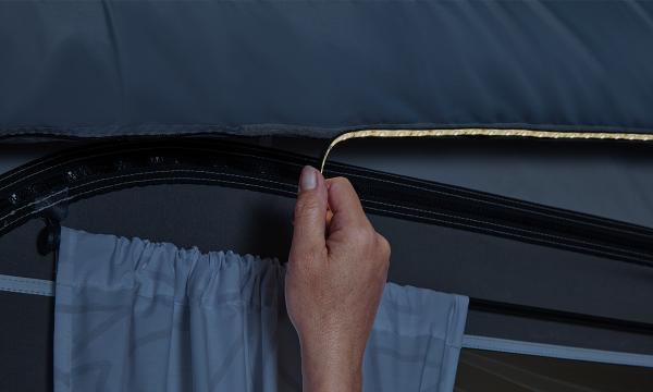 Te taśmy mocuje się taśmą klejącą na rurkach powietrznych markizy Ventura Airlub do ramy w namiocie lub markizie. Połącz taśmy oświetleniowe LED z przedłużaczem lub przewodem T i dostosuj oświetlenie do swoich potrzeb. Te taśmy oświetleniowe mogą rozjaśnić cały namiot lub też można je przyciemnić, stosując ściemniacza LED Isabelli, tak aby stworzyć przytulną atmosferę.