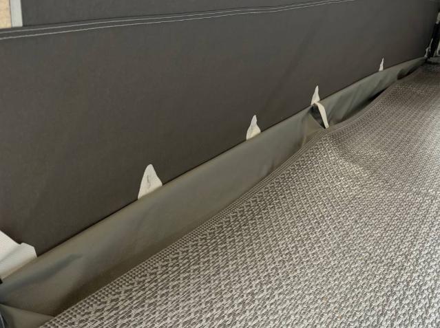 The inner skirt, also known as an awning draught skirt, protects the awning from water and draughts. It is placed in the inside of the awning and a moisture membrane, such as a tarpaulin, is placed on top. The tarpaulin should stretch 7-15 cm up on the sides of the awning to ensure that water is channelled under the tarpaulin and not into the awning.