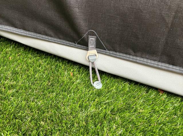The adjustment straps in the corners of the awning help you adjust the distance to the ground and tension your awning correctly. These adjustment straps ensure tight tensioning - even on uneven terrain.