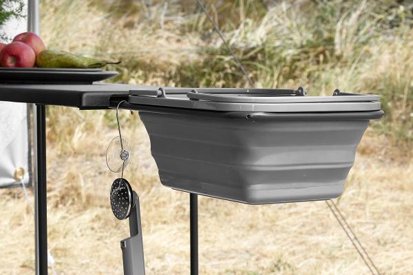A practical washing-up tub, collapsible to take up minimal space. This tub saves space and is easy to take with you on the go. So there’s no excuse for avoiding the washing-up!