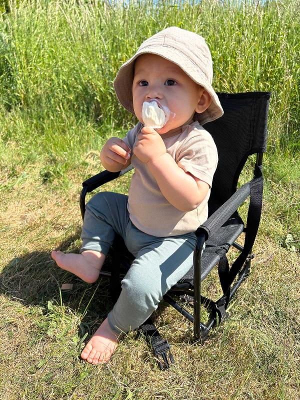 The perfect foldable mini chair for the little campers. The mini chair can be attached to all Isabella chairs using the included straps. The removable cushion insert allows the chair to be used by children from around 8 months (or when the child can sit independently) up to the age of 5 years. The cushion insert can be washed in a washing machine.