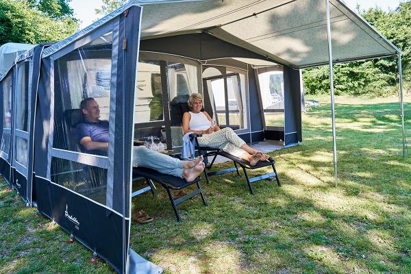 Vacuum or brush awning off when it is dry. Subsequently, wipe with a damp cloth.