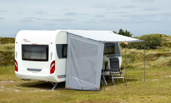 Vacuum or brush awning off when it is dry. Subsequently, wipe with a damp cloth.