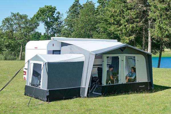 The Ventura AIR Aura is a flexible air porch awning for caravans that combines spaciousness and easy setup. Includes a connection pad that can be folded in half to create a tight connection between the awning and the caravan. Thanks to the smart air system where all air tubes are connected, you can quickly inflate from one valve, minimise the risk of leaks and enjoy an awning that remains stable even when the weather changes. The Aura measures 250 cm in depth and is available in three widths (260, 330 and 400 cm).