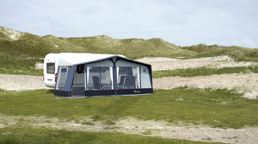 Flexible air awning for caravans and motorhomes in two sizes. The perfect choice when you need an easy solution for your camping holiday.