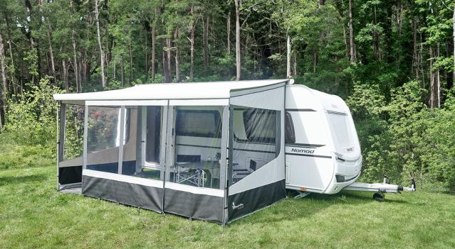 Create a cosy outdoor area in front of your caravan, motorhome or van with Wind Front, which easily attaches to your wind out canopy for extra shelter and comfort.